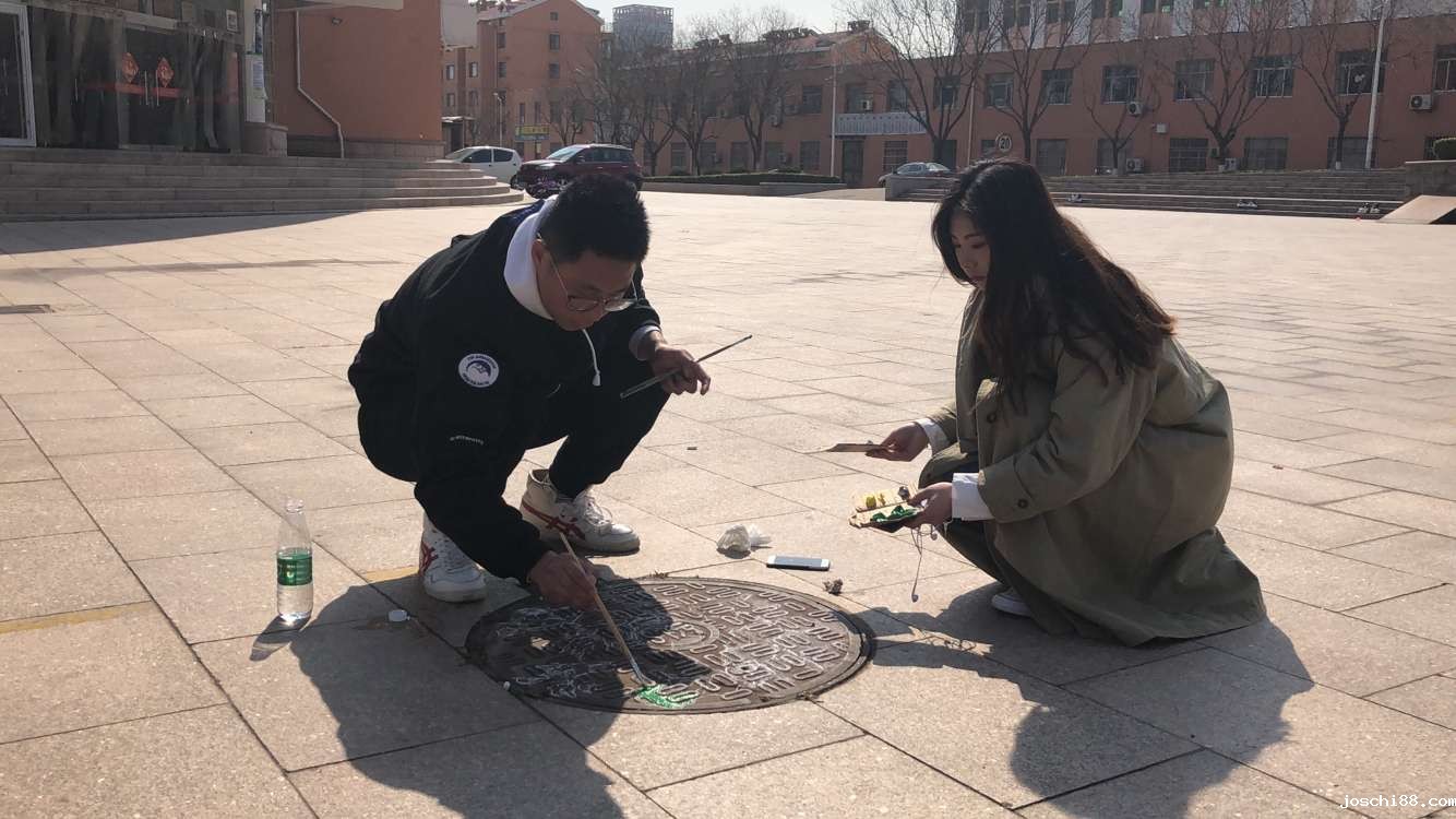 我院运动训练学生会举办“创意点缀校园 色彩照亮生活”井盖涂鸦活动