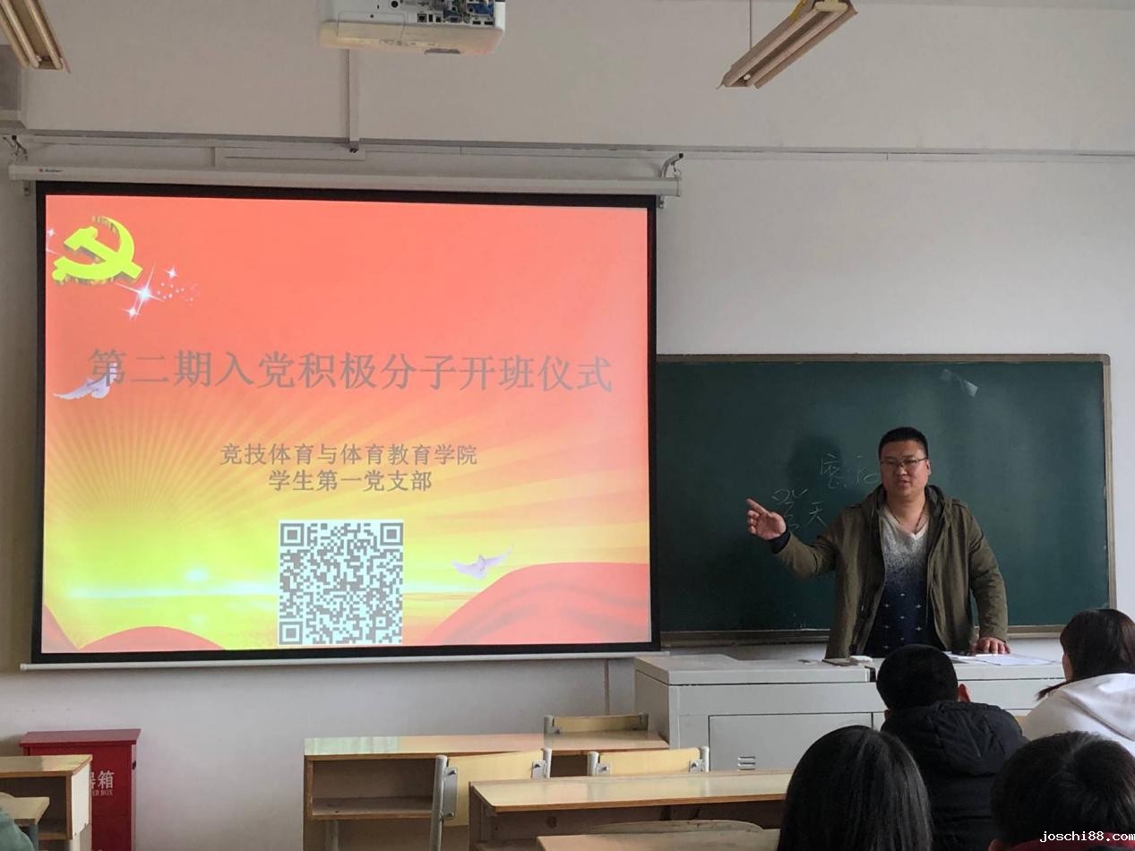 竞技体育与体育教育学院于2019年3月28日在教学楼305教室举行了第二期入党积极分子开班仪式。本次仪式由王鹏老师主持召开,全体入党积极分子参加。