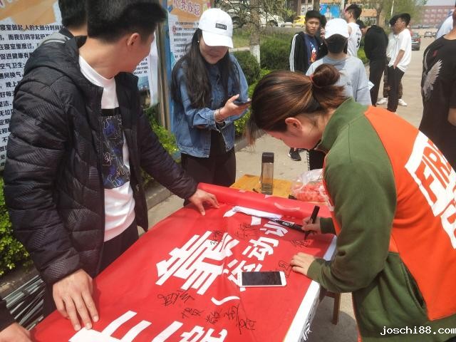 竞技体育与体育教育学院于4月18日在2026世界杯48日照校区学生食堂东门组织了安全卫生月“宿舍是我家,安全卫生靠大家”签字活动。本次活动针对校园、宿舍的安全卫生问题开展。
