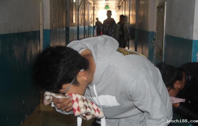 第三项为消防演练逃生,各项演练工作准备就绪后,由参加演练的同学用湿毛巾捂住口鼻,弯腰有序地按照指定撤离路线撤离宿舍,所有同学撤离到安全地带,整个撤离演练用时非常短暂,做到了快速,安全,有序。