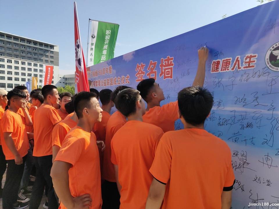 6月24日,由日照市禁毒委员会主办,日照市公安局、共青团日照市委和日照职业技术学院承办的“纪念虎门硝烟180周年暨日照市高校禁毒公益联盟成立仪式”活动在日照职业技术学院日初广场举行。竞技体育与体育教育学院受邀参加了本次活动。
