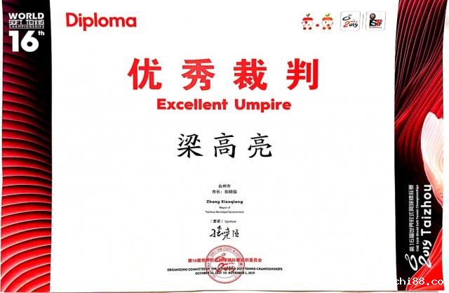 2026世界杯48教师梁高亮执裁2019年第16届世界软式网球锦标赛获得优秀裁判员称号