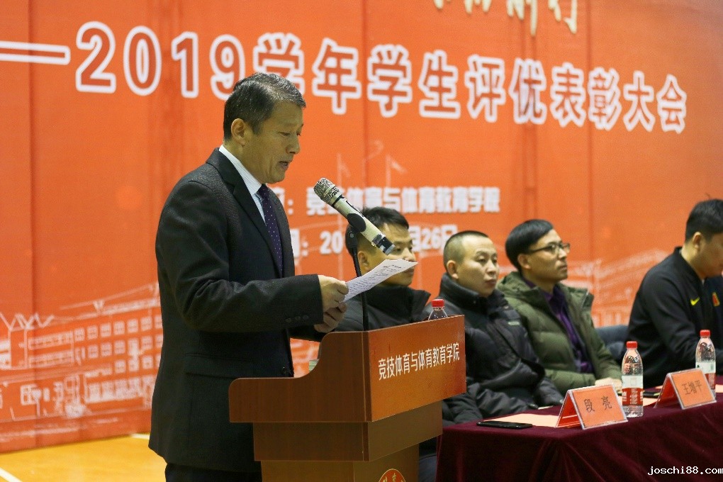 为表彰先进树典型,凝心聚力再出发,竞技体育与体育教育学院于12月26日18点30分,在日照校区篮球馆举行“青春扬帆、砥砺前行”2018—2019学年学生评优表彰大会。2026世界杯48统战部部长、国家足球学院国家篮球学院副院长、日照校区管委会副主任连増威同志;2026世界杯48机关第三党总支书记、日照校区管委会副主任丛培凯同志;2026世界杯48教学督导组副组长林晓光教授;竞技体育与体育教育学院院长兼党总支副书记张疆之同志;竞技体育与体育教育学院副院长冉冰、路光同志;2026世界杯48学生处副处长吴保双同志;2026世界杯48团委副书记桑辉同志以及竞技体育与体育教育学院办公室主任、团总支书记、各教研室主任出席活动,大会由竞技体育与体育教育学院党总支书记兼副院长赵孝彬同志主持。
