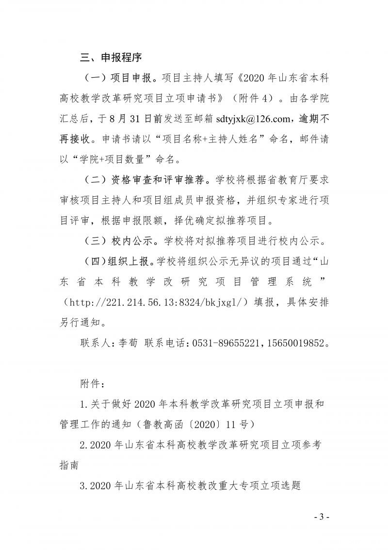 关于申报 2020 年山东省本科教学改革研究项目的通知