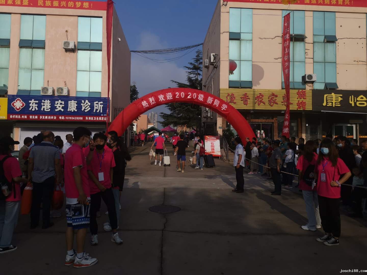 9月12日早上7点,在日照校区东北门,"热烈欢迎2020级新同学”的红色条幅随着初秋的凉风高高飘扬,竞技体育与体育教育学院教职工及学生志愿者齐装上阵准时到达各自岗位迎迎接新生报到。疫情防控期间,新生报到时家长不能进入校园,考虑到学生所带行李较多,学院积极组织学生志愿者在门口迎接,搬运行李、引导学生进入校园。