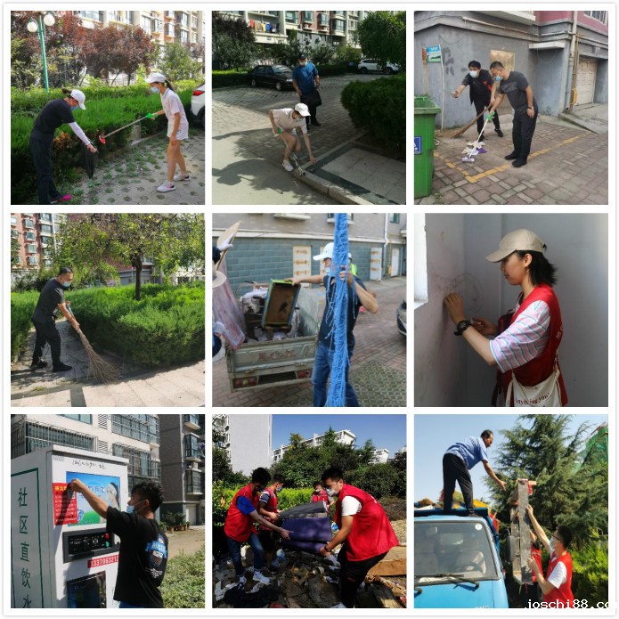赵孝彬书记应社区要求将党员分成了三组分别对社区道路、花坛、楼前楼后等处的垃圾进行清理。尽管烈日当空,却挡不住党员同志们的热情,大家干劲十足,有条不紊地进行社区卫生清洁工作。志愿者们对工作耐心细致,大到一个塑料袋,小到一个纸片,清扫目标放眼所有角落。我们热情洋溢的服务也感染、带动了社区居民,他们也纷纷加入到我们的队伍中来,为小区的焕然一新贡献一份自己的力量。