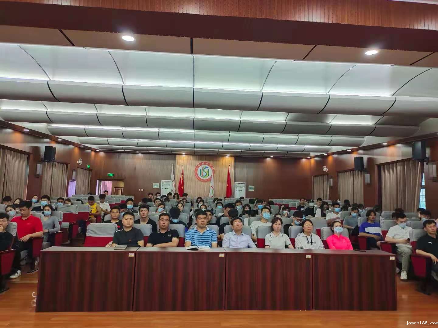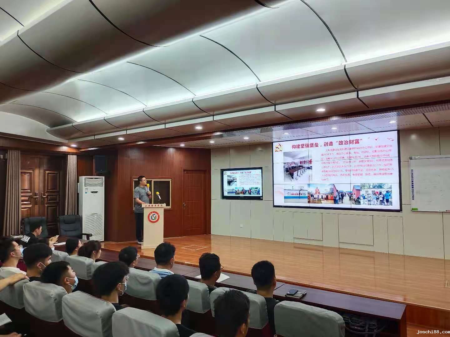 6月17日下午,党总支副书记王鹏在日照校区培训楼五楼报告厅作题为“脱贫攻坚,奋斗有我。扎根基层,青春无悔”的党史学习教育专题党课,于一主持会议。