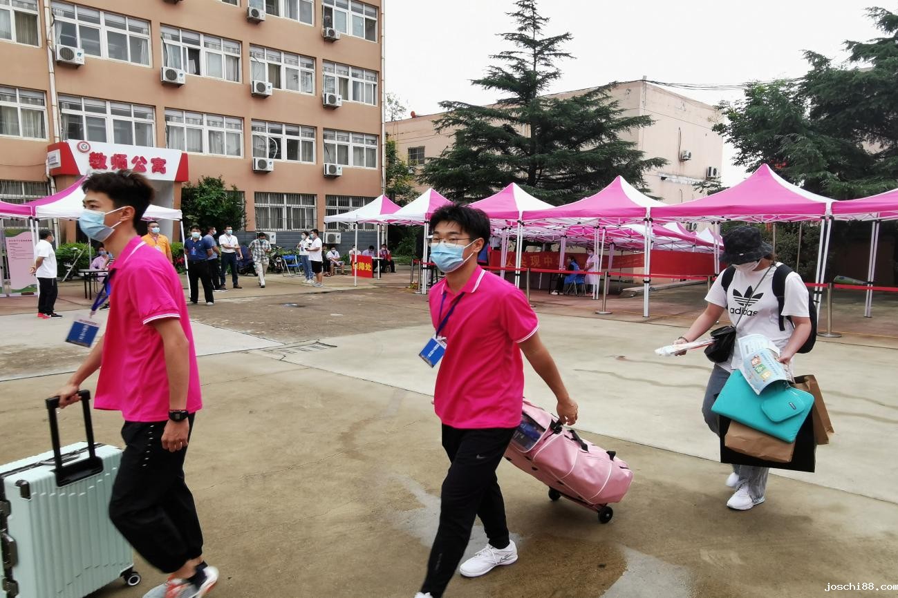 按照疫情防控要求,明确志愿者的工作职责和注意事项。从通道引领、体温检测、行李搬运、检查签到、分发饭卡等,志愿者们都认真负责,兢兢业业。阴雨连绵不断,通过志愿者们的亲情引导,热情服务,让新生有一种家的归属感,也正是这群敬业的志愿者,使学生报道工作更加安全有序、顺利的进行。