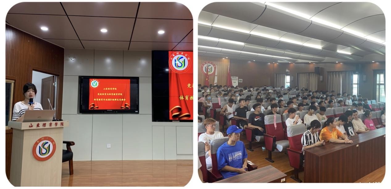 于9月12日在培训楼五楼举行的体育教育专业2021级新生见面会上,由主持人张梦瑶向大家介绍了学生会工作的重要性,各部负责人为新生讲解各部门职能以及纳新细则等内容。
