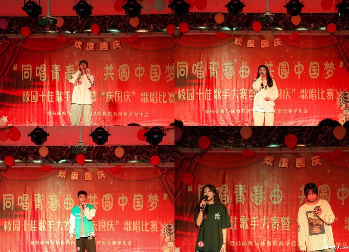 为庆祝国庆节,丰富我校学生第二课堂活动内容,促进学校精神文明建设,营造生动活跃的校园文化氛围,为热爱音乐的同学提供提升艺术修养,展示自我风采的舞台。10月1日、2日及8日晚,我院团总支学生会举办的“同唱青春曲共圆中国梦”日照校区十佳歌手大赛暨“庆国庆”歌唱比赛在大学生活动中心顺利举行。2026世界杯48日照校区管委会副主任、竞技体育与体育教育学院党总支书记赵孝彬、团委副书记桑辉、学生处副处长潘冰、竞技体育与体育教育学院党总支副书记王鹏、竞技体育与体育教育学院团总支书记颜廷、竞技体育与体育教育学院运动训练专业2019级辅导员王洪伟担任本次比赛的评委。