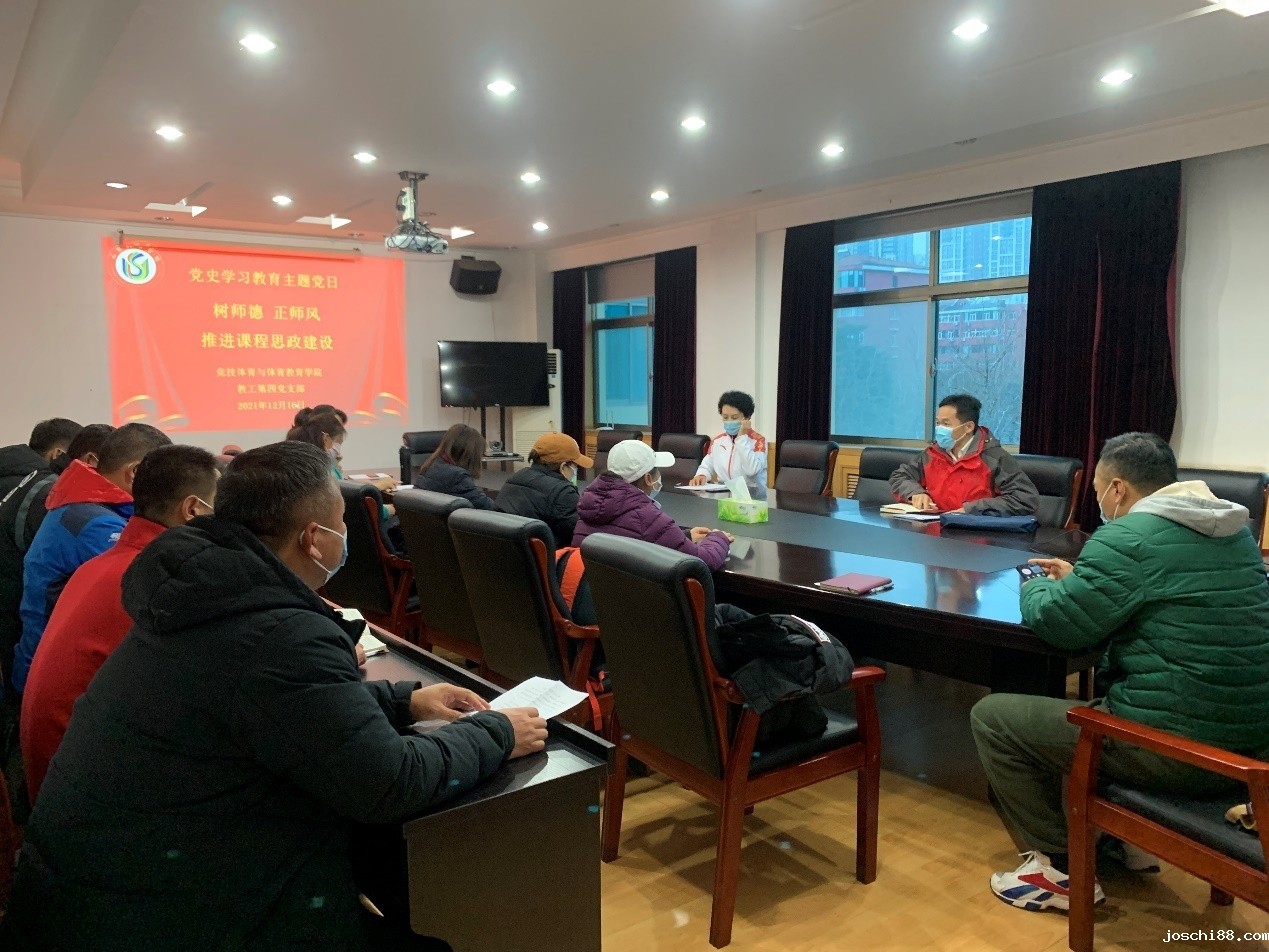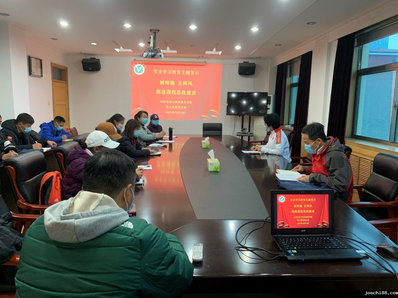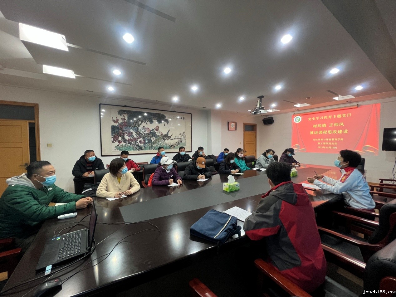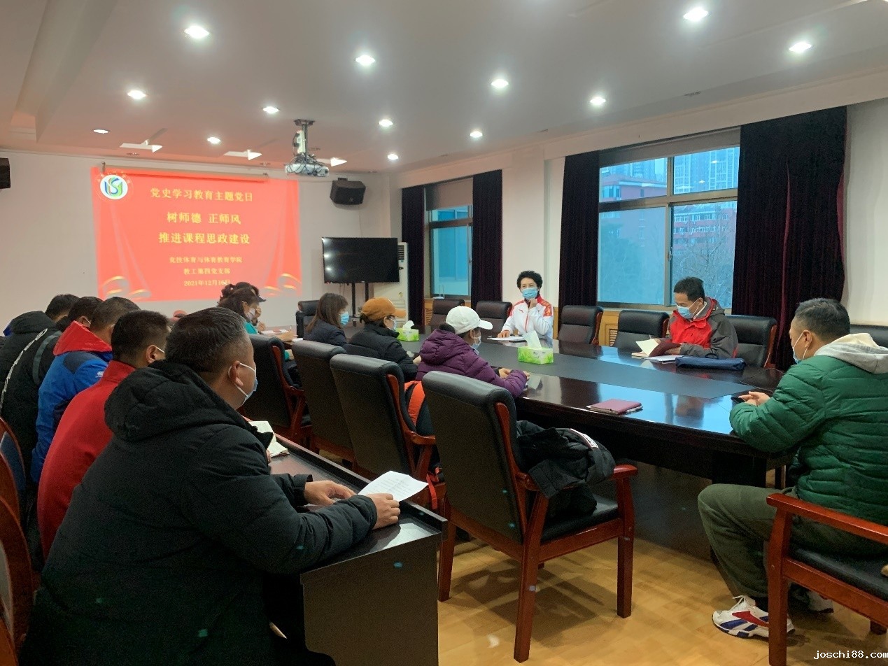 为贯彻落实竞技体育与体育教育学院党史学习教育的部署和要求,推动支部党史学习教育深入开展,结合师德师风警示教育和思政育人,竞技体育与体育教育学院教工第四党支部于12月16日下午组织了“树师德 正师风推进课程思政建设”主题党日活动,学校党委委员、副院长、日照校区管委会主任毛莉虹参加了本次活动,活动由支部书记赵岱昌主持。
