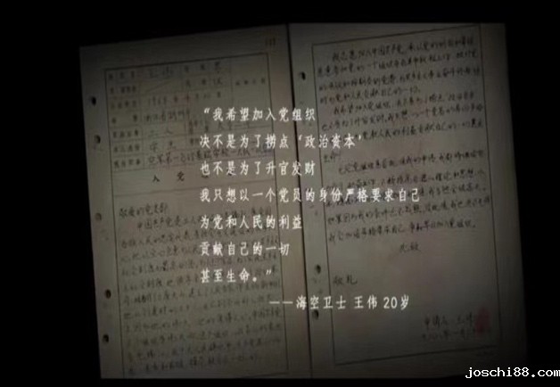 “我希望加入党组织,绝不是为了捞点‘政治资本’,也不是为了升官发财,我只想以一个党员的身份要求自己为党为人民的利益贡献自己的一切,甚至生命。”