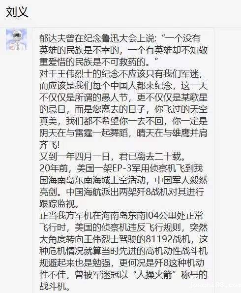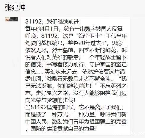 天地英雄气,千秋尚凛然!2001年4月1日,一个再寻常不过的日子,当和煦的春风吹过千家万户,当树梢的喜鹊不停欢跳鸣叫,你可知道,就在这一天,年仅33岁的王伟和他心爱的战机一起,用尽全部力气,付出一切代价,终化作照亮黑暗森林的熊熊火焰,永远燃烧在中国南海的万里碧空!二十年过去了。呼叫81192!请返航!请回家!