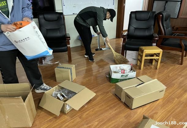 图为学生党员们清理之后的报告厅