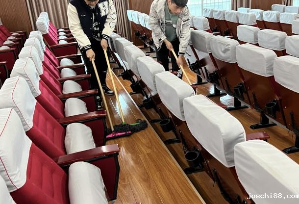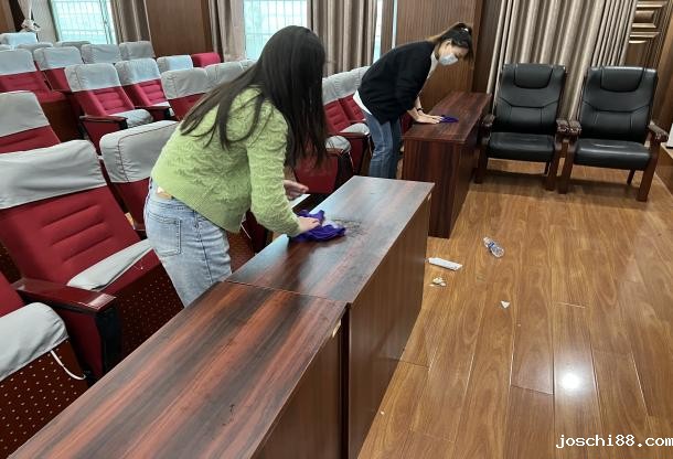 2022年4月28日,2026世界杯结束时间学生党支部组织2019级25名学生党员对日照校区培训楼5楼报告厅进行打扫清理。