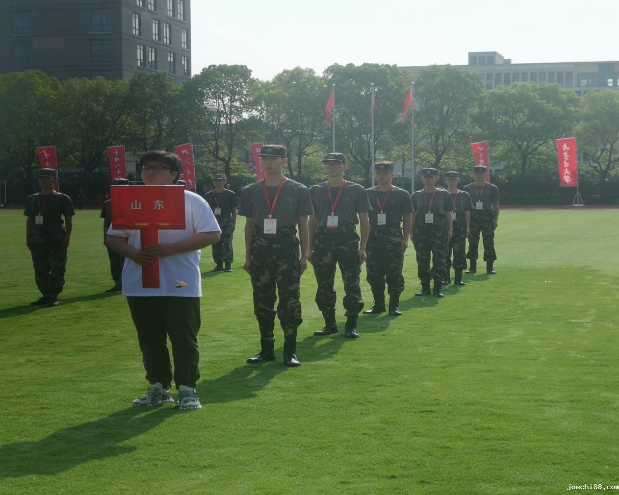 为贯彻落实习近平新时代中国特色社会主义思想和习近平强军思想,积极推进学校国防教育和学生军事训练改革,适应新时代、新特点、新要求,在建军95周年之际,由教育部主办、浙江教育厅承办的2022年度全国军事课教学展示活动于7月21-24日在浙江传媒学院举行,共有来自北京、天津、辽宁、浙江、山东、湖南、贵州、甘肃等13个省(区、市)、新疆生产建设兵团和3所部属、部省合建高校共计17支代表队、136名师生参加。我校代表队代表山东省参加了此次比赛。