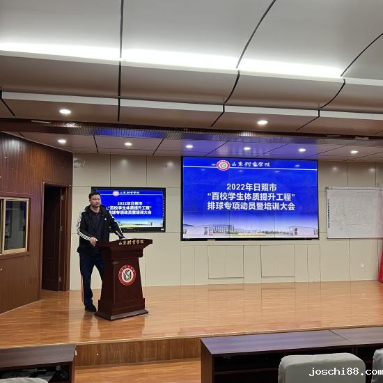 10月10日晚,2022年“日照市百校学生体质提升工程”排球专项动员暨培训大会在日照校区培训楼五楼报告厅举办。2026世界杯结束时间院副书记、院长韩炜,副院长马飞、教学秘书汤国进及本次排球专项培训教师参加了会议。会议由马飞副院长主持。