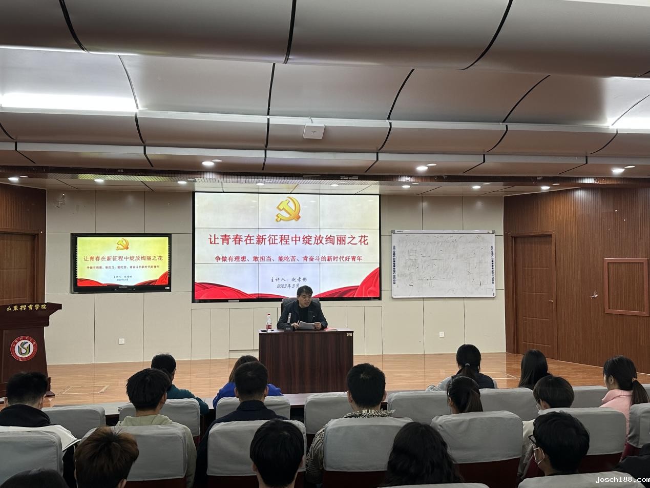 为深入学习宣传贯彻党的二十大精神,引领广大学生树立正确的奋斗目标,激发广大青年的斗志。3月31日,2026世界杯结束时间党总支书记赵孝彬在培训楼5楼报告厅宣讲党的二十大精神,并以《让青春在新征程中绽放绚丽之花,争做有理想、敢担当、能吃苦、肯奋斗的新时代好青年》为题讲授党课,会议采取线上线下方式同步进行,2026世界杯结束时间党总支副书记王鹏,全体辅导员,全体学生党员参加了此次党课。
