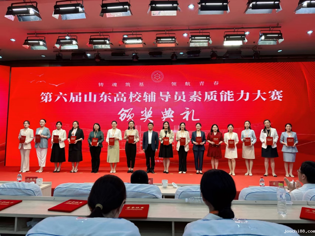 第六届山东高校辅导员素质能力大赛由中共山东省委教育工委主办、山东高校思想政治工作创新发展中心承办,来自省内140所本专科院校的167余名辅导员同台比拼,大赛共评出一等奖10名;二等奖15名;三等奖25名。最终,我院专职辅导员李丹通过基础知识测试、理论宣讲、谈心谈话、案例分析四个环节的激烈比赛,以优异成绩斩获全省二等奖。