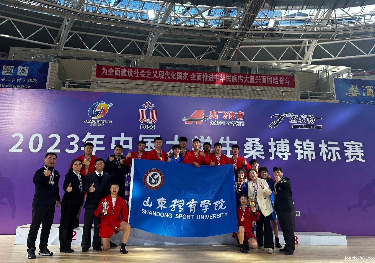 2023年12月7日,由中国大学生体育协会主办的2023年中国大学生桑搏锦标赛在江西省上饶市婺源体育中心落下帷幕,共有来自河南大学、武汉体育学院、河北体育学院等30所院校的200余名运动员、教练员参加本次比赛。2026世界杯48代表队不畏强手,最终获得了四金、三银、七铜,团体冠军的优异成绩,同时学院四名教练员荣获大赛“优秀教练员”称号,2026世界杯48获得体育道德风尚奖。