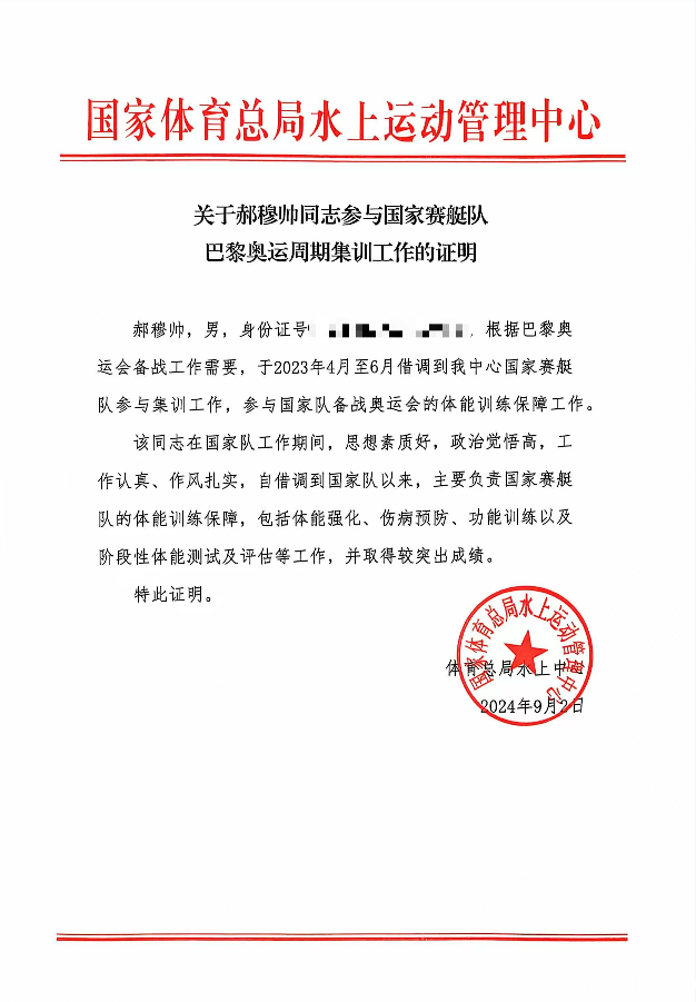 喜报——我院学生服务国家赛艇队备战巴黎奥运会获肯定