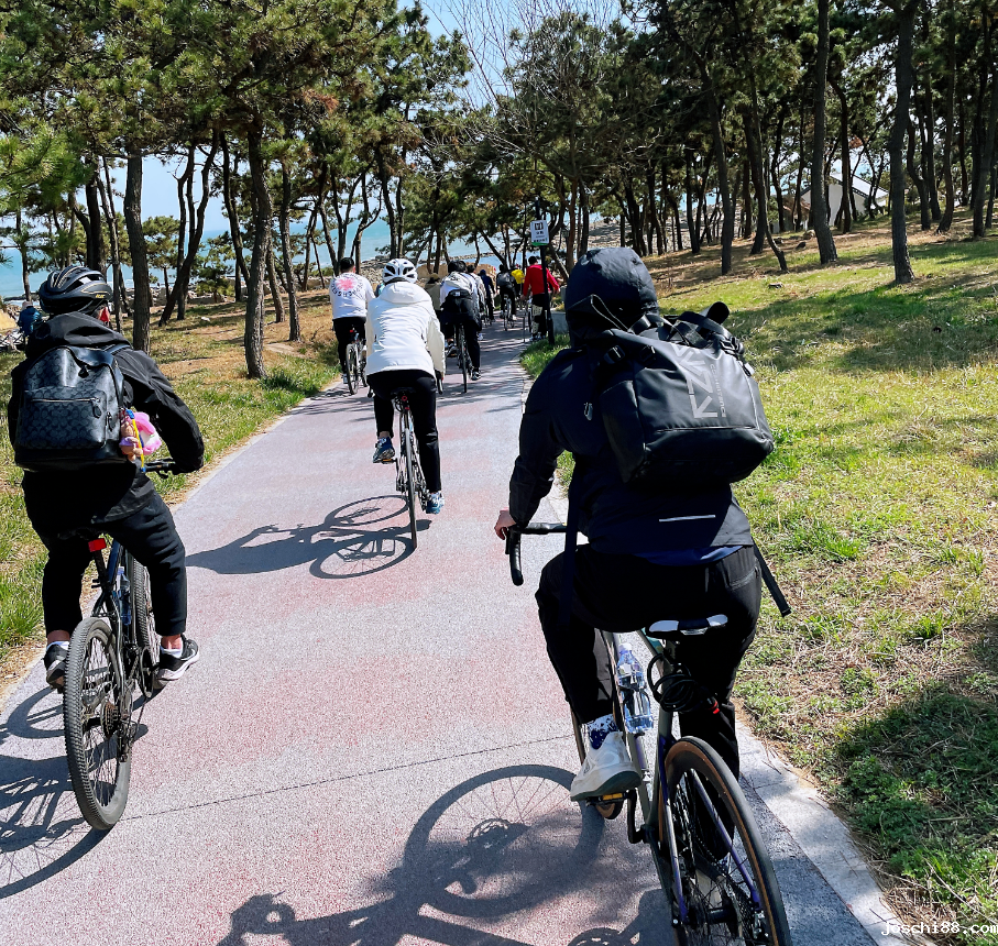 经过一个多小时的骑行,队伍抵达了半程往返点——日照海滨国家森林公园,接近18公里的路程让大家充分体验到了骑行的魅力。