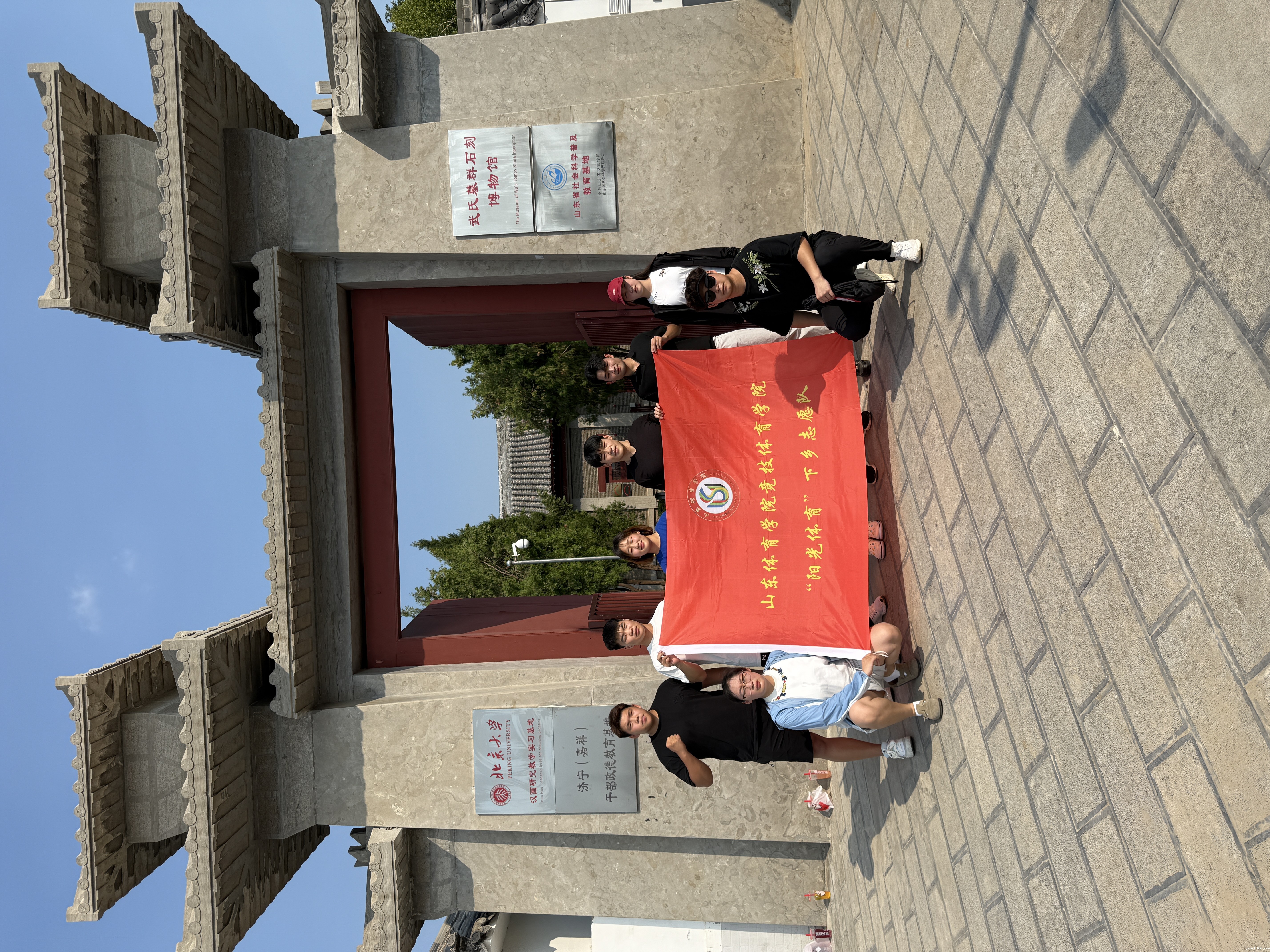 下午,队员们走进武氏祠,在斑驳的石刻前驻足凝望。那些镌刻着古代武术、狩猎、竞技场景的画像石,仿佛在无声诉说着传统体育的源远流长——从挥戈搏兽的力量展现,到两两相搏的技巧切磋,再到祭祀中的礼仪性动作,无不透着古人对体魄锤炼与精神涵养的追求。大家一边对照拓片辨认招式,一边讨论着传统武术与现代体育在“强身”“修心”上的共通之处,让历史遗存成为连接古今体育文化的鲜活教材。