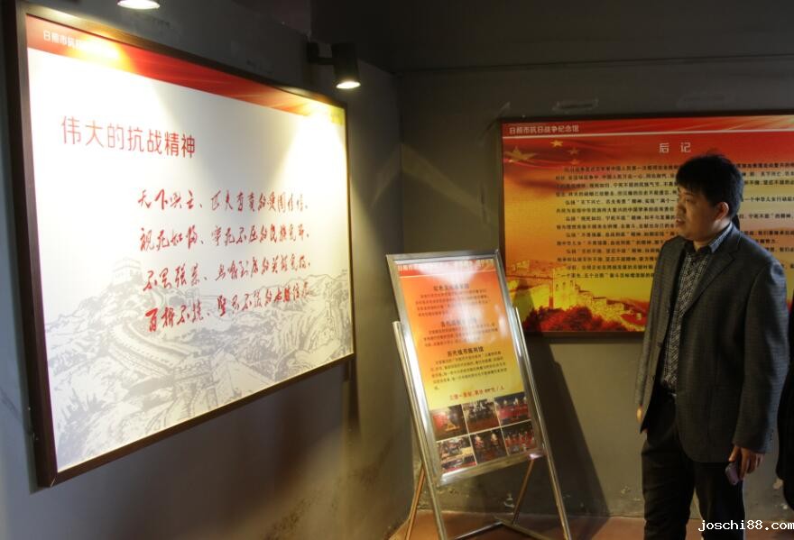 日照市抗日战争纪念馆位于碧海路,包括抗日战争纪念馆、红色文化展览馆、古代民俗博物馆、历代钱币陈列馆共四个分馆,本次参观活动的主要场所——抗日战争纪念馆是其中面积最大,藏品最丰富的分馆,纪念馆由序厅、抗战历程厅、日军暴行厅、武装斗争厅、抗日根据地厅、抗战英烈厅、抗战胜利厅、展望未来厅等组成,馆内藏品以1931年至1945年抗日战争时期的各种历史文献和相关实物为主,同时也收藏日本自1874年以来侵略和占领台湾的各类文物,内容涉及军事、政治、经济、文化、社会等诸多历史,是迄今为止最全面、最权威展示日照抗战历史的展览馆。