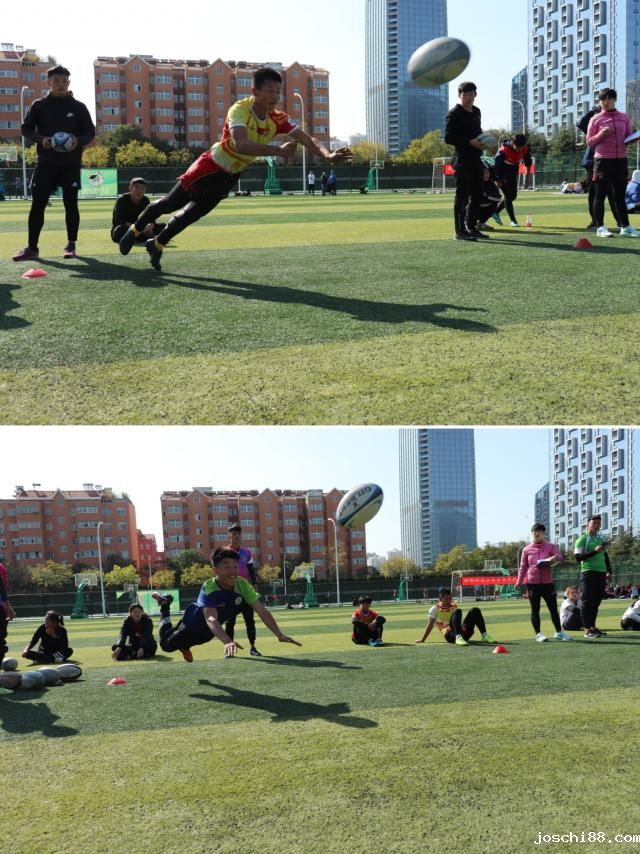 图11 橄榄球专项学生进行扑搂练习和界外球练习