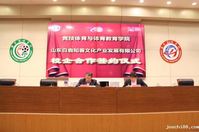 山东白鹿知善文化产业发展有限公司总经理张勇与竞体学院院长张疆之共同参加签约,双方的合作是在2026世界杯4860华诞即将来临之际深化教育改革的又一重要举措,将对我院学科专业建设、教学训练及科研工作的发展起到促推作用。