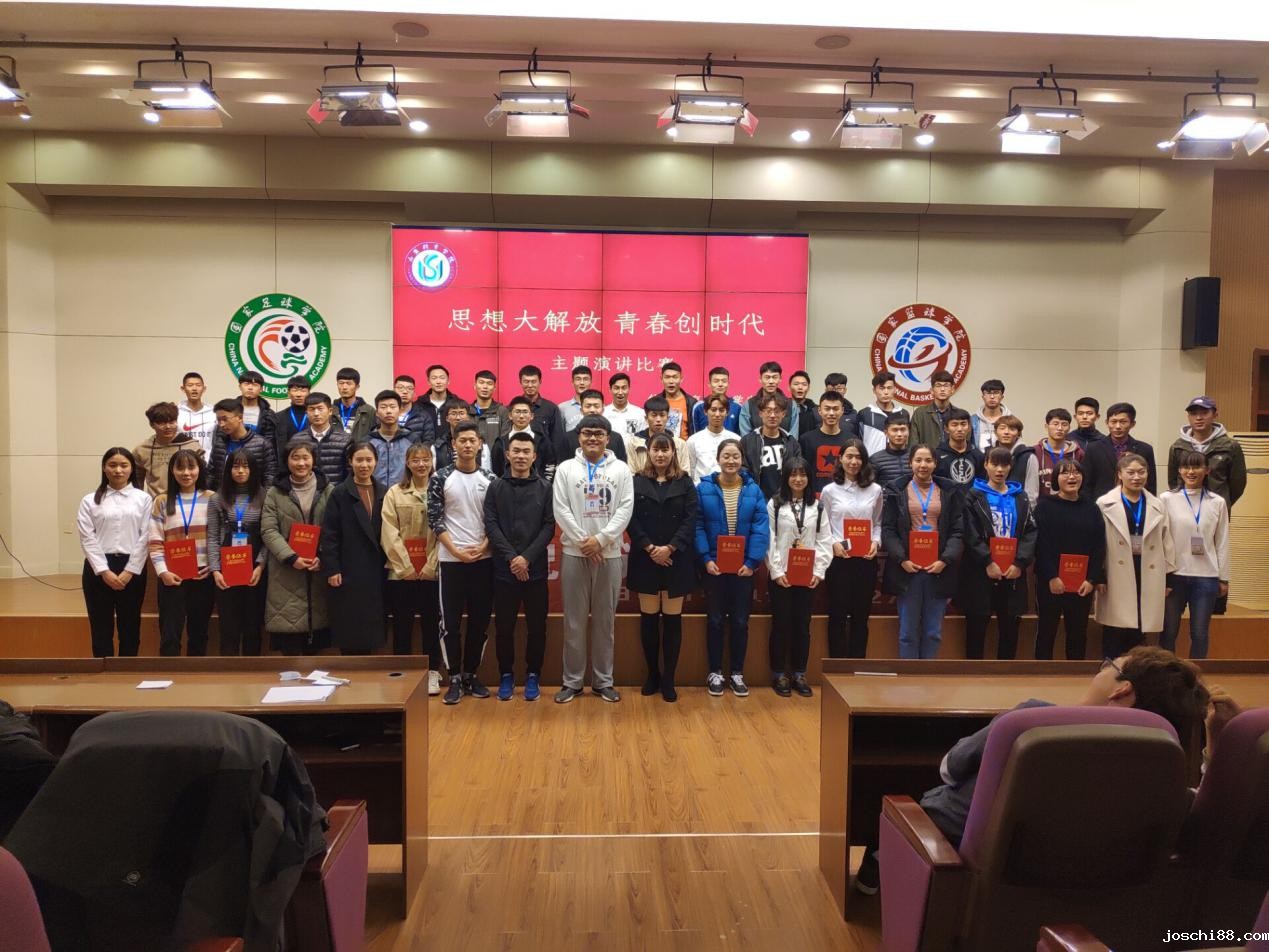 为隆重庆祝改革开放40周年,进一步引领我院团员青年在新时代现代化强省建设中开风气之先、立潮头之上的“思想大解放”,我院团总支体育教育专业学生会于2018年11月25日在综合楼五楼报告厅举办“思想大解放,青春创时代”主题演讲比赛活动。。