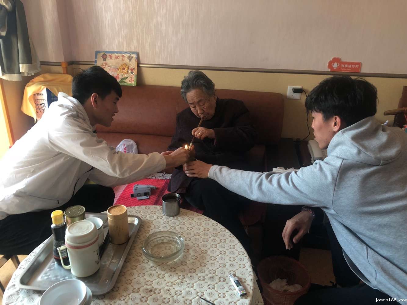 动当天下午参加活动的同学准时在指定地点集合,乘坐公共汽车前往敬老院。到达敬老院后大家都迫不及待想要陪伴老人们度过这个美好的下午。同学们先是送上了特意为老人买的生活用品,随后又细心的为老人们清洗烟袋并将靠背调到老人觉得舒适的角度。干完这些,大家都围在老人床边耐心的听老人们讲他们的故事,同学们认真的表情,亲切的话语,使得老人们乐不可支。嘘寒问暖后同学们和志愿者一同为老人打扫餐厅,大家有序的进行了打扫,把桌凳都擦洗干净,并整齐的摆放好。同学们的努力给老人带来了喜悦、幸福和满足。看到老人们脸上洋溢的灿烂笑容,他们也会心地笑了。